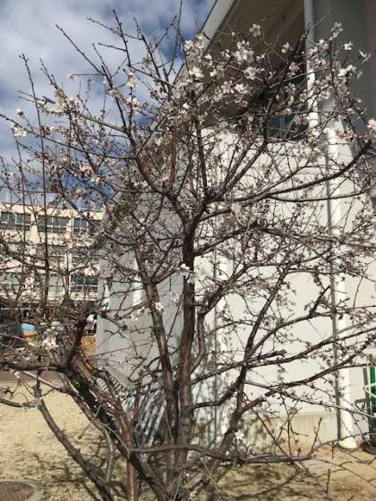 学習園の近くに可憐な花が開いています。さくら?ではないようです。チョコレートに入っている、茶色くて大粒の果実がなります。