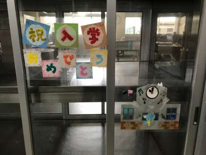 ごにゅうがく おめでとうございます。きゅうしょくしつには、さくらのおはなが たくさん さいています。みなさんが きてくれるのを ずっとまっています。いちにちもはやく みなさんに おいしい きゅうしょくを たべてもらいたいです。