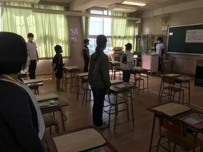 6年2組だけではありませんが、自分とみんなを守るための約束をきちんと確認し、窓を開け、机を離して生活することになります。子供たちにとって、ストレスであるかと思います。しかし、危機が去るまではみんなで力を合わせて頑張りたいです。6年生は、姿勢も態度もとてもよい手本となってくれそうです。