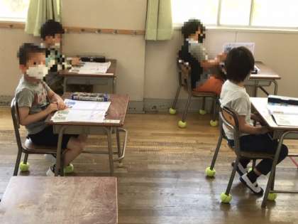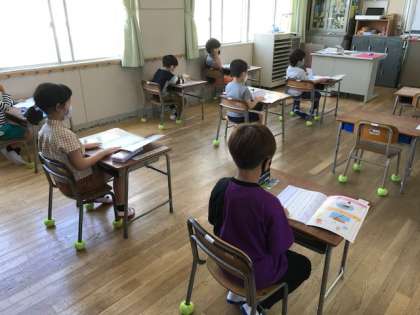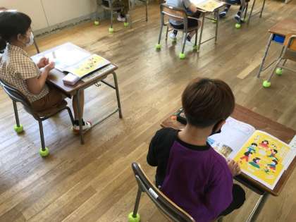 1年生がひらがなの学習をしていました。初めのうちは、「へ」「し」「く」などの一筆で書けるひらがなを学びます。お家や寮での学習がしっかりできていて、とてもていねいなひらがなを書けていました。