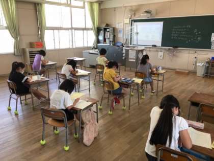 3年生は、1学期になりたい自分について目標を決めました。その後、かけ算九九の百マス計算に取り組みました。九九を完璧にするのが3年生の重要な学習です。