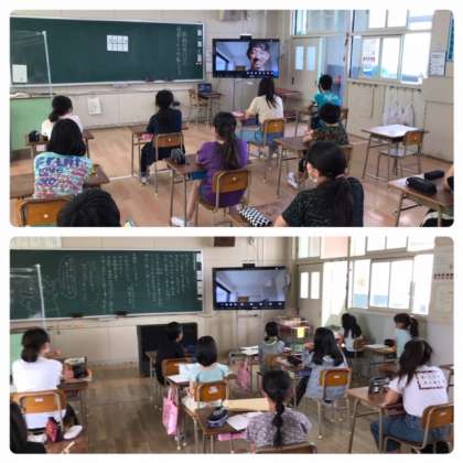 本日6月1日から学校が再開しました。まだ午前中の登校ですが、子供たちは朝から元気に登校してくれました。今朝の全校朝会は、オンライン朝会でひた。校長から、新しい生活様式のお話と新1年生の入学のお話と学校の職員の紹介をしました。