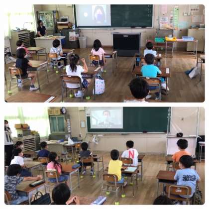 各教室では子供たちがモニターを見ながらお話を聞きました。とても静かに集中して聞くことができ、すばらしい態度でした。保健室の廣瀬先生からは、手洗いの大切さと手洗い動画を見て欲しいというお話を聞きました。