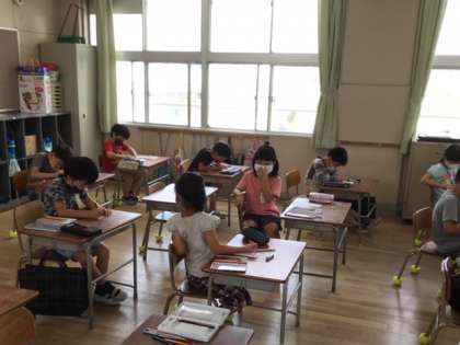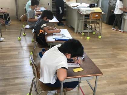 2年生は、日直さんの名札を作っていました。自分の名前を丁寧に丁寧に書いて、イラストも書き足していました。かわいい名札が完成することでしょう。