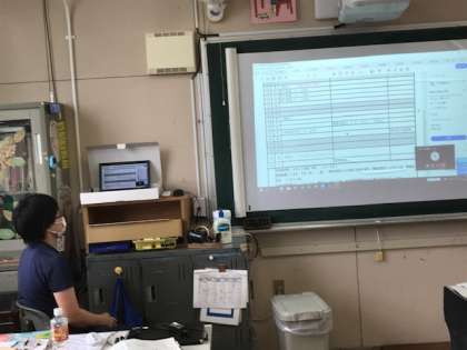 本日は、職員室での密を避けるためにオンラインで会議をしました。担任は各教室で画面を見ながら参加しました。思いの外スムーズに進められて安心しました。