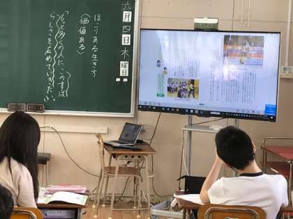 「ほこりある生き方」パラリンピック陸上選手の谷真海さんの姿を通して、逆境を乗り越える生き方を考えていました。高学年になると考える主題が難しくなりますが、しっかり考えています。