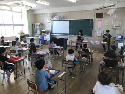 1年生のみんなは算数で数字の勉強をしました。ゆっくり丁寧にかけていました。宋先生と運動場で遊んで、給食も、美味しくいただきました。