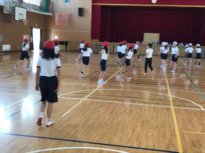 5年生の体育で、整列の仕方を学習していました。集団行動の基礎であり、重要なまなびですが、やはりソーシャルディスタンスは守ります。