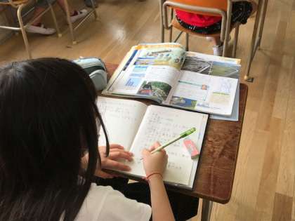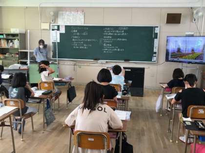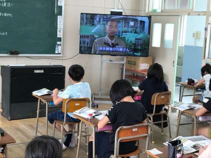 5年生は社会科で水を活用した産業について学習しました。排水機場の方の話をビデオで聞き、農業での水の効果的な活用について調べました。