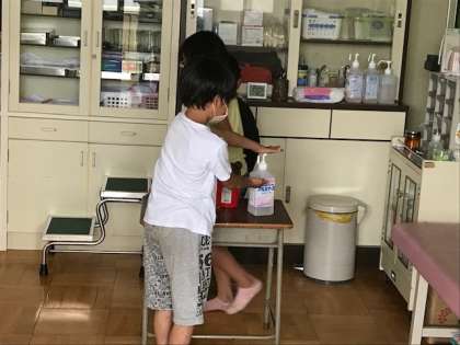4年生になると視力検査もテキパキとできていました。保健室の廣瀬先生のおっしゃる内容を把握して、消毒も完璧です。