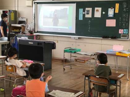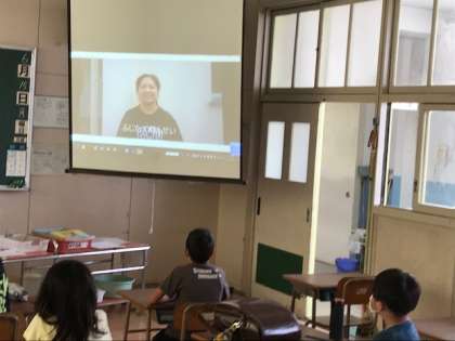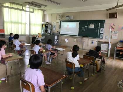 今朝の朝会は、オンラインで行いました。校長先生のお話の後、新転任の先生方の自己紹介のビデオを見ました。どの学級も静かに聞くことができていました。