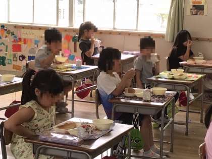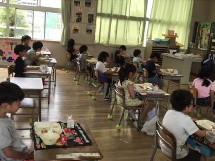 今週も1年生の給食の時間はとても静かです。食事中におしゃべりをせずに、もぐもぐしっかり食べています。給食調理員さんから、「残食が無くて嬉しいです。」と褒めてもらっています。