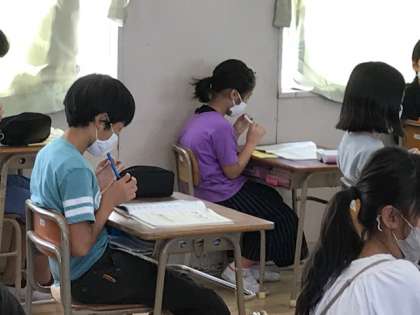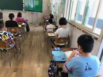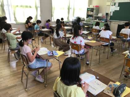 5年生の音楽の時間にリコーダーの学習をしていました。とはいえ、感染予防のため2m以上離れていないと演奏できません。今日は鉛筆で指の練習です。早く演奏できるようになればいいですね。