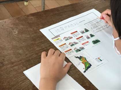2組の社会科は、「地震被害や復興」について政治的な観点から学んでいました。