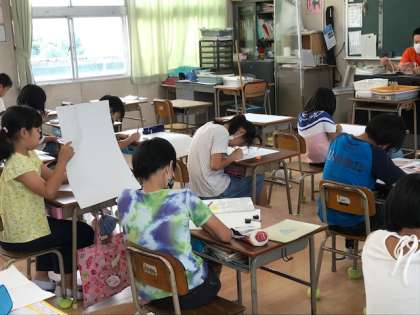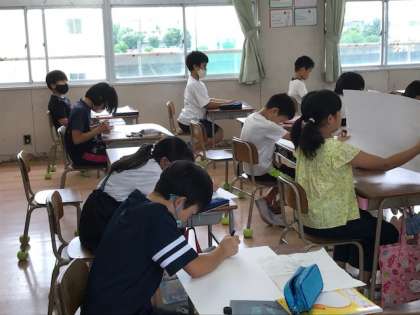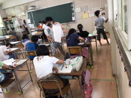 4年生が、図工科の時間に作品作りに取り組んでいました。下絵をしている子、絵具を塗り始めた子、進み具合はそれぞれですが、出来上がりが楽しみです。
