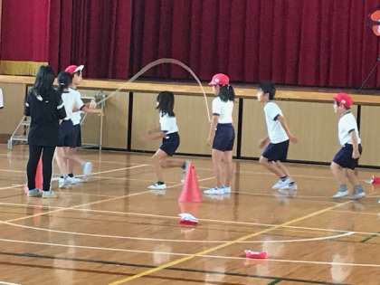4年生は、長縄の連続跳びに取り組んでいます。通常より速く回す縄を続けて跳びます。みんなのリズムご合わないと難しいです。取り組み始めた当初よりずいぶん上達しています。