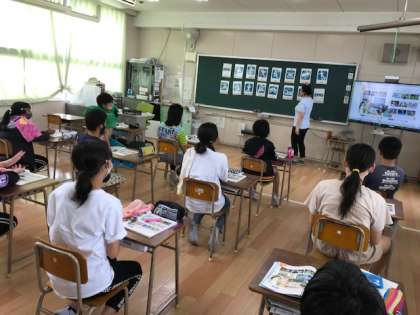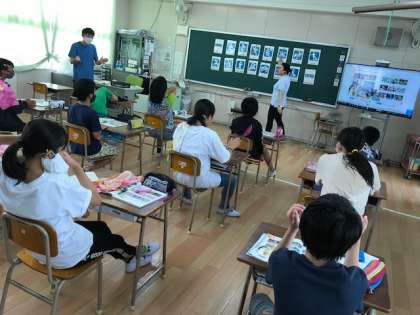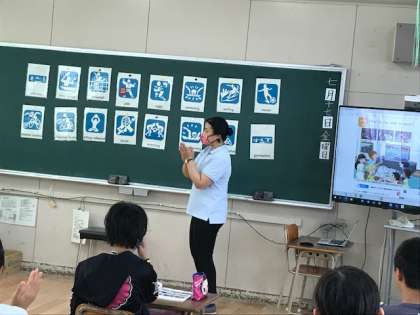 6年生の外国語の学習です。オリンピック、パラリンピックの種目を英語で言いながらアクティビティをしていました。「JUDO」の時に立つのですが、あわてて「KENDO」でたってしまって、大爆笑になりました。