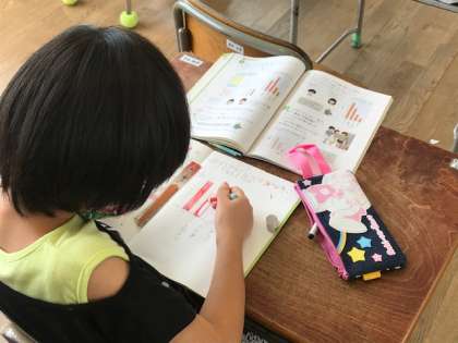 3年生が算数の時間に棒グラフを書いていました。表から読み取れることをわかりやすくするためには棒グラフはとても便利です。丁寧に定規を使って書いていました。