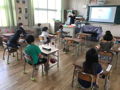 画面から流れる英語はもう完璧に覚えています。発音も上手です。耳が育ってますね。