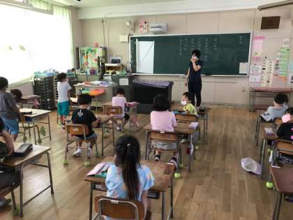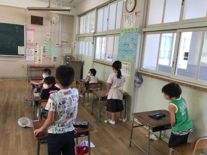 1年生が、2学期の係を決めていました。新しい係を考えて発表していました。予定表係ができ、先生に代わって予定表を掲示するそうです。