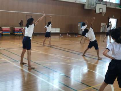 5.6年生の運動会練習です。からだをいっぱいに動かして、迫力ある演技になるよう頑張っています。