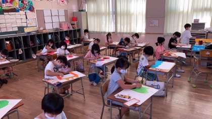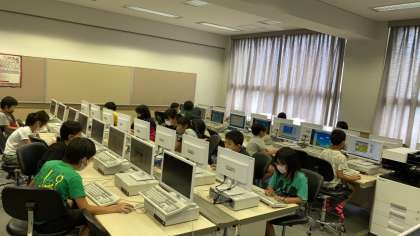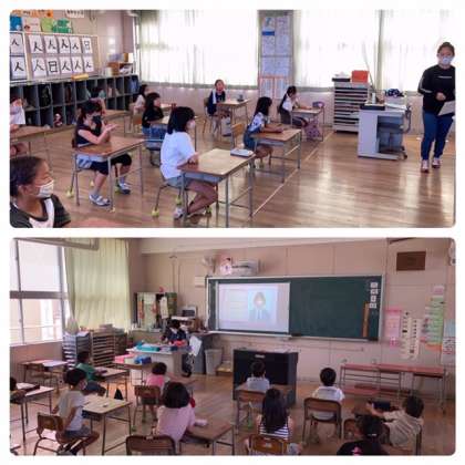 2年生は、図工科でザリガニのお家を描いています。4年生は、パソコンルームで総合的な学習、3年生は学級活動で運動会の話し合い、1年生は国語の映像を見ています。