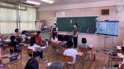 今日から教育実習の先生が5年生1組に来ました。池島小学校の先輩です。これから4週間5年生と一緒に頑張ってくれます。