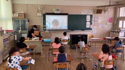 今朝は児童朝会かおりました。校長先生からのクイズと教育実習の先生の自己紹介がありました。4週間の実習中に一度はお話ができるといいですね。
