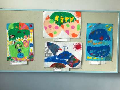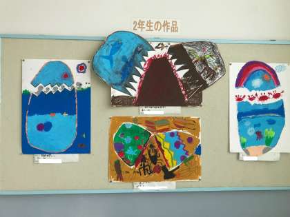 2年生の作品です。こんなにすてきな卵から生まれてくるのは何でしょう。子どもたちのイマジネーションがふくらみますね。