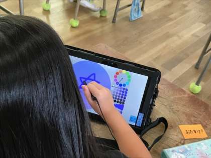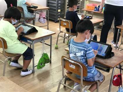 1年生がプログラミング学習をしていました。viscuitというアプリケーションを使って、アニメーションを作りました。集中力が素晴らしいです。