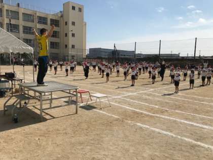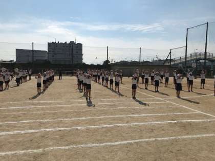 爽やかな秋の空気の中で運動会の全体練習をしました。いつもと違う内容でも、しっかり学んで練習をすることができました。