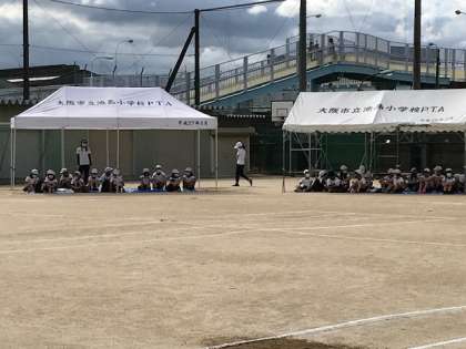 いよいよ開会です。ブルーシートに新聞で作った座布団を敷いて待機しています。