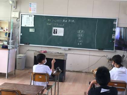 6年生音楽科で鑑賞の授業をしていました。ブラームス作曲「ハンガリー舞曲」2拍子に合わせて指揮をしていましたが、曲の速度が速くなったり遅くなったりするので指揮をするのはとっても難しいようです。