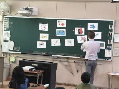 10月から4年生の外国語活動にネィティブの先生がきてくれます。今日は、数と文房具、