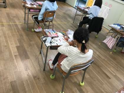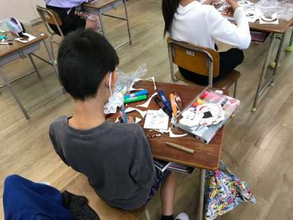 3年生が図工科の時間にハロウィンのモールの飾りを作っていました。一つ一つのイラストをていねいにから長崎難しそうです。