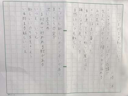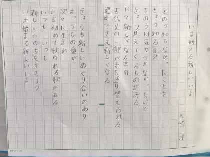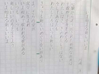 6年生の教室に掲示していました。どの子もていねいで美しい文字で書けています。素晴らしいですね。