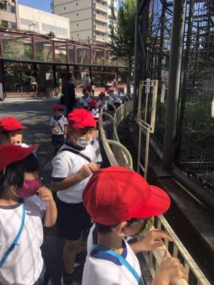 今日は雨で延期になっていた1.2年生の遠足です。天王寺動物園でたくさん動物を見ましょう。暖かくてよかったね。