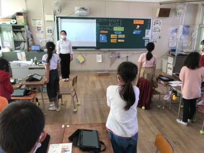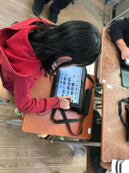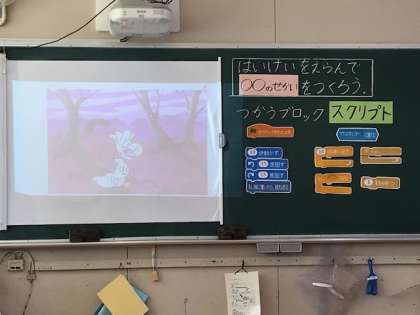 21日水曜日、3年生がプログラミング学習の研究授業を受けました。タブレット端末を使って、動くアニメーションを作ります。