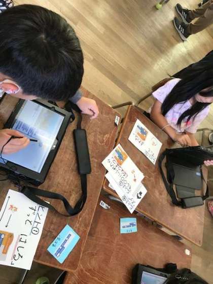 友だちと教えあったり、友だちの作品を見たりしました。すごい集中力でできていました。