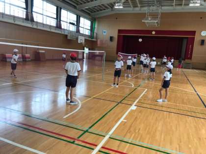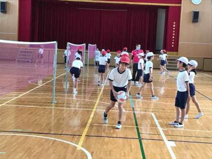 4年生では、体育科でソフトバレーボールを学習していました。今日はアタックの仕方を練習していました。