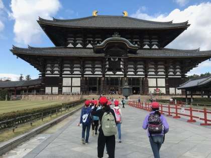 大仏殿の見学です。大きな大仏にびっくり!輝いてるのは大仏殿の屋根にある鴟尾(しび)です。