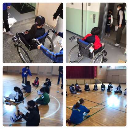車いすの重さや扱いかたの難しさを体験できたようです。最後の話し合いでは、車いす生活の人の気持ちにまで触れることができていました。