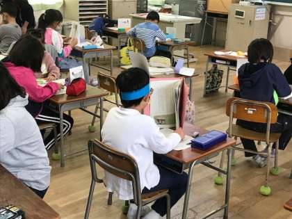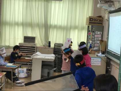 2年生は、国語科「ニャーゴ」の音読発表です。気持ちを込めて読む読み方を相談したり練習したりした後、みんなの前で発表します。