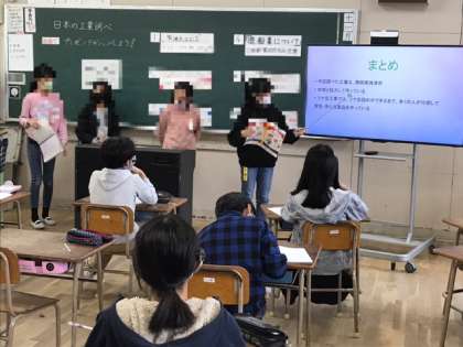 5年生は、社会科「日本の工業」で調べた内容をプレゼンテーションソフトを使って発表していました。分かりやすくまとめられていて、プレゼンもとても上手です。