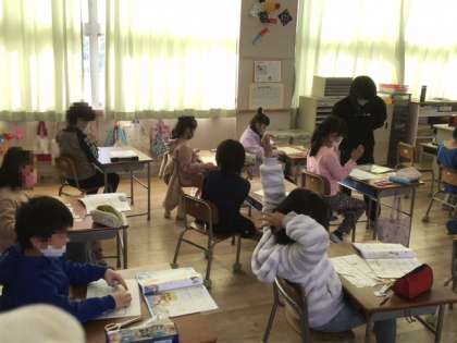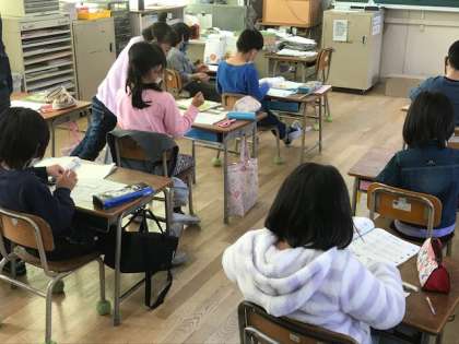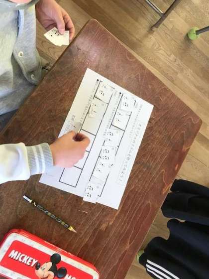 2年生の音楽科の学習で、音楽づくりをしていました。タンタン、タタタン、ウンタンなどとリズムカードを並べて作ります。手拍子で確認しながら進めていました。