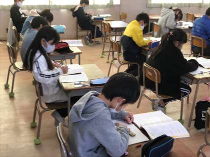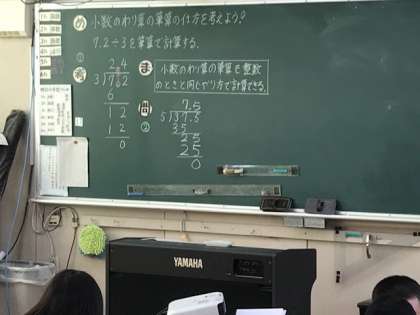 4年生の算数科で「小数の割算」を筆算で解いていました。とても真剣に一問一問に取り組んでいます。