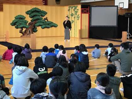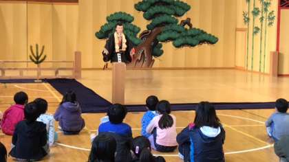開演です。最初は狂言「柿山伏」です。台詞の面白さに子どもたちは笑いをこらえられないようでした。