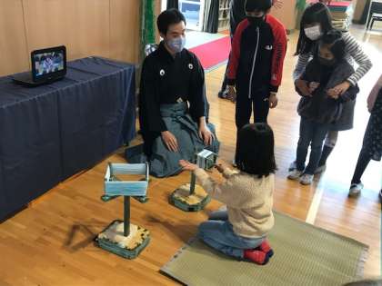 展示物の説明を聞かせていただいたり、糸車を体験したりしました。みんな興味津々です。