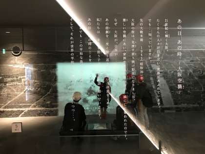 入ってすぐの2階には大阪の戦争時の生活や、人々の様子、戦争へ向かう歴史が展示されています。