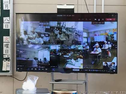 今年のふれあい給食は、新型コロナウィルス感染予防のためにオンライン開催です。それぞれの学級の様子を見たり、リクエストした音楽を聞いたりして過ごしました。
